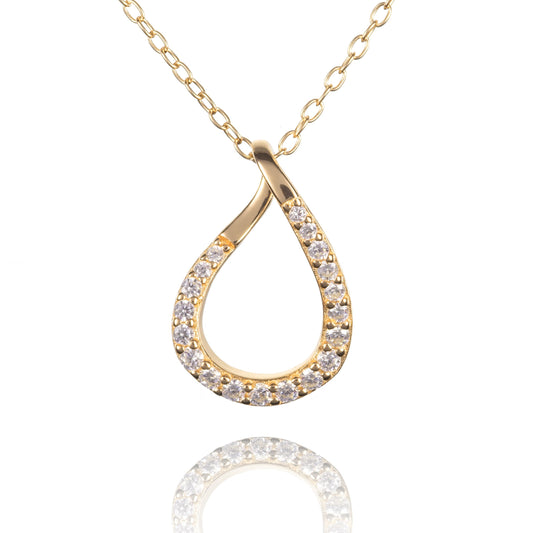 Features• Stylish gold chain necklace for women with an elegant hollow teardrop pendant set with Cubic Zirconia stones• 12mm by 18mm long pendant set with sparkling AAA Cubic Zirconia stones on a dainty 16" gold chain with 2" extension links• Gold necklace for women made from 18ct gold plated 925...