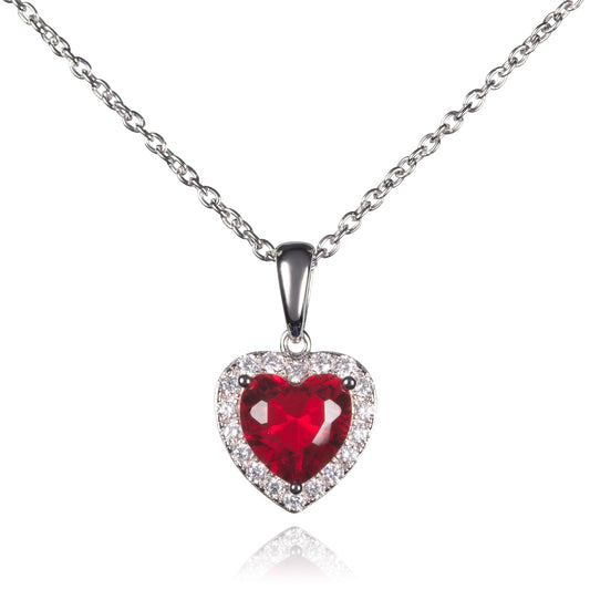 Features• Stylish ruby red necklace with a heart pendant on an adjustable 18” chain, including 2-inch extension links.• 925 Sterling silver pendant necklace for women with an 11mm by 18mm heart pendant. Stylish stone necklaces for women with a heart-shaped ruby red stone encircled by delicate AAA cubic zirconia stones.• Solid...