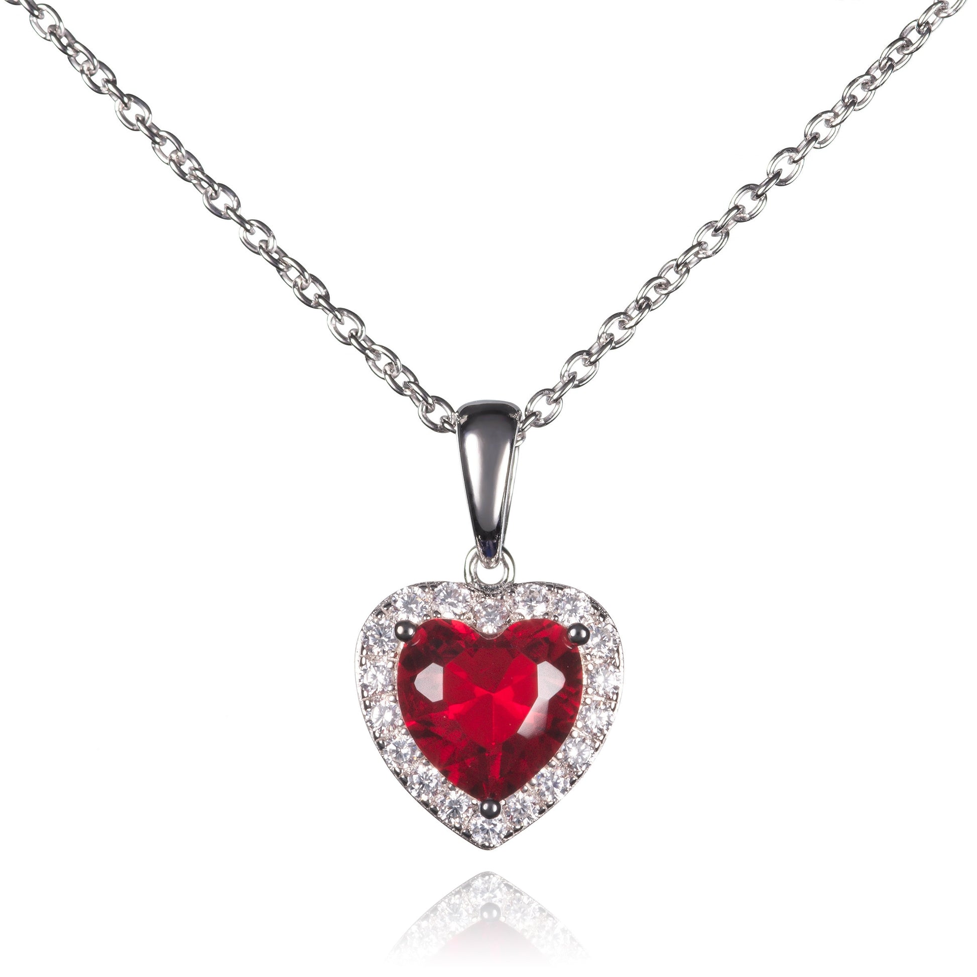 Glima Red Heart Necklace – 925 Sterling Silver with Ruby CZ & Sparkle
