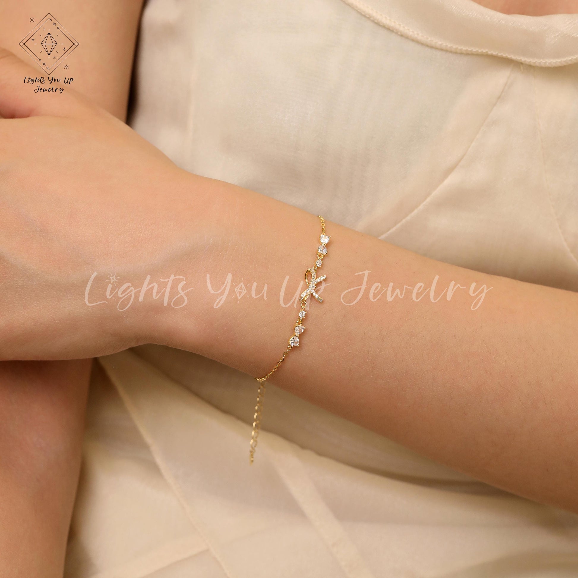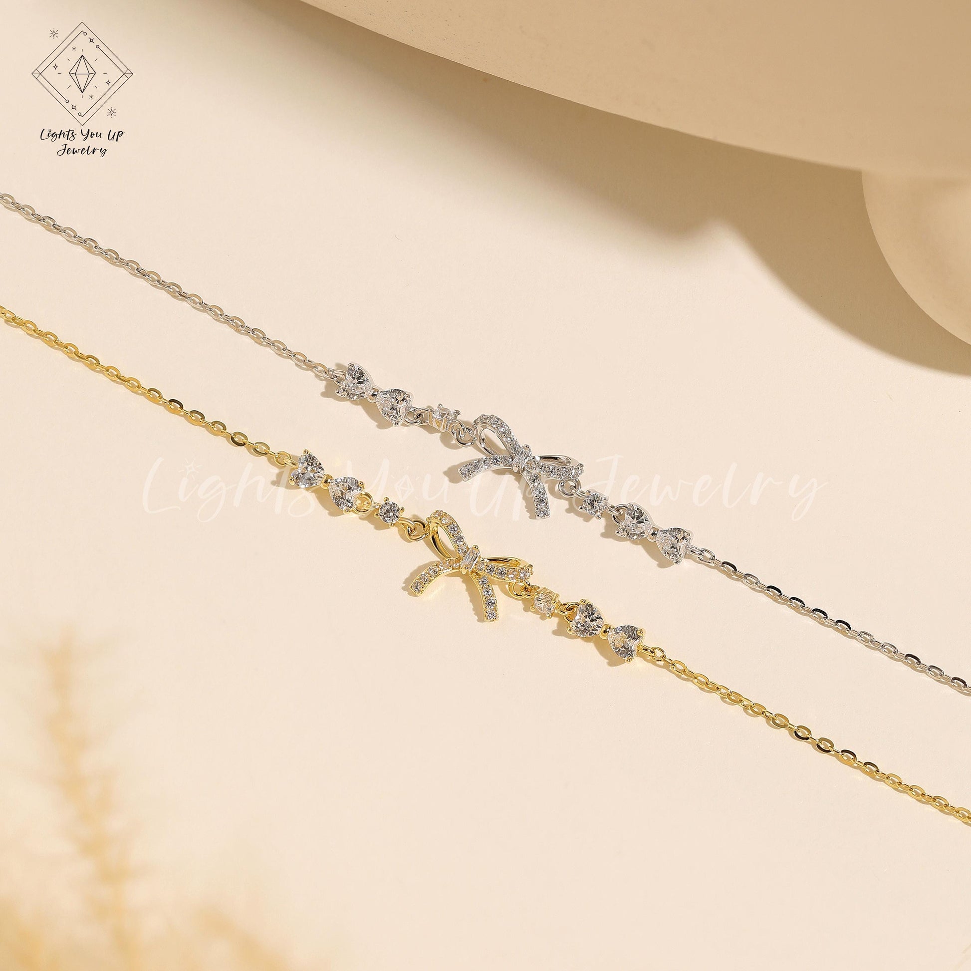 Glima Ribbon Knot Bracelet – Dainty S925 Silver & Gold with Diamond Bling