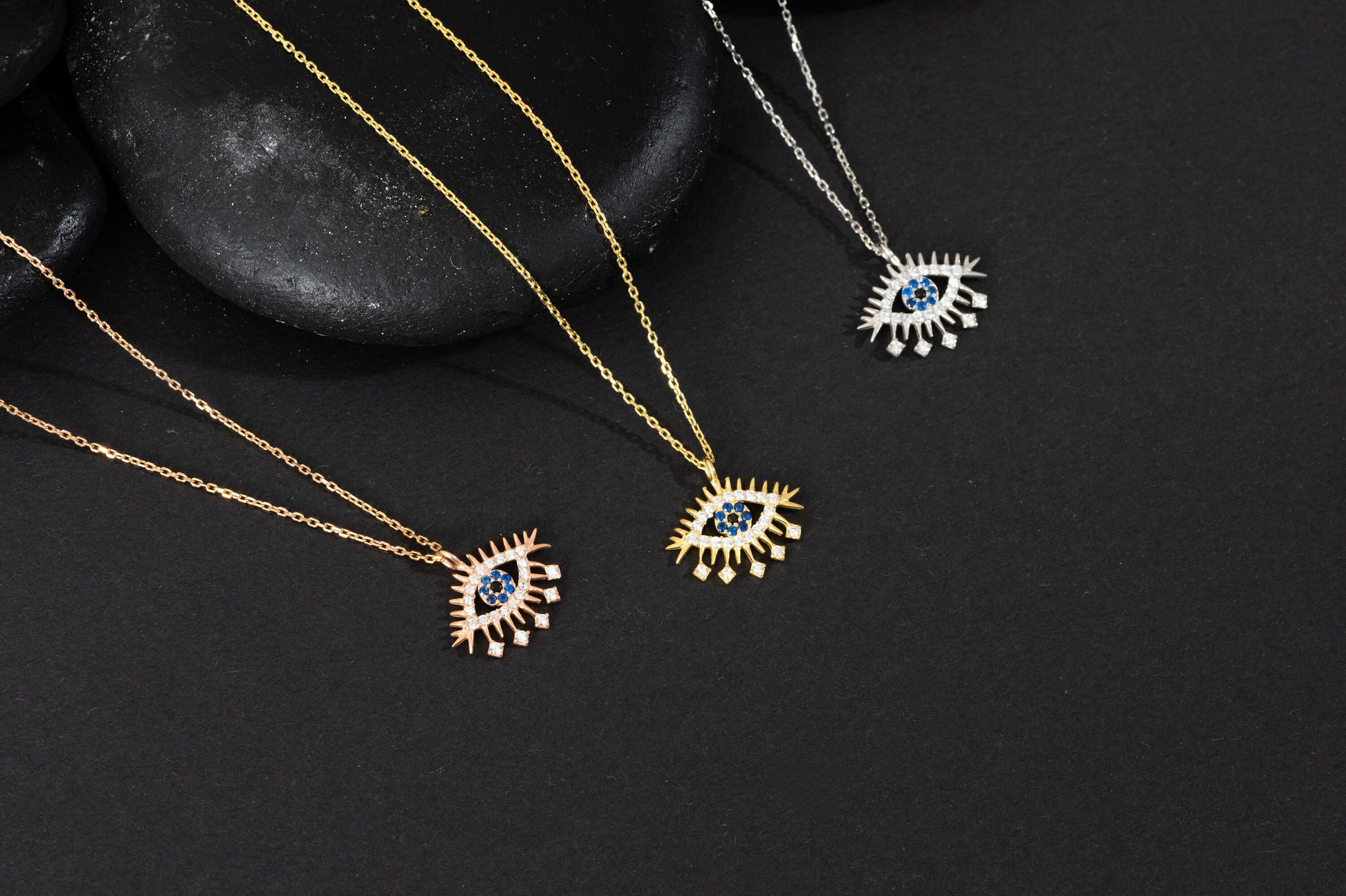 Glima Evil Eye Necklace – Sapphire & Diamond Protection Pendant Gift