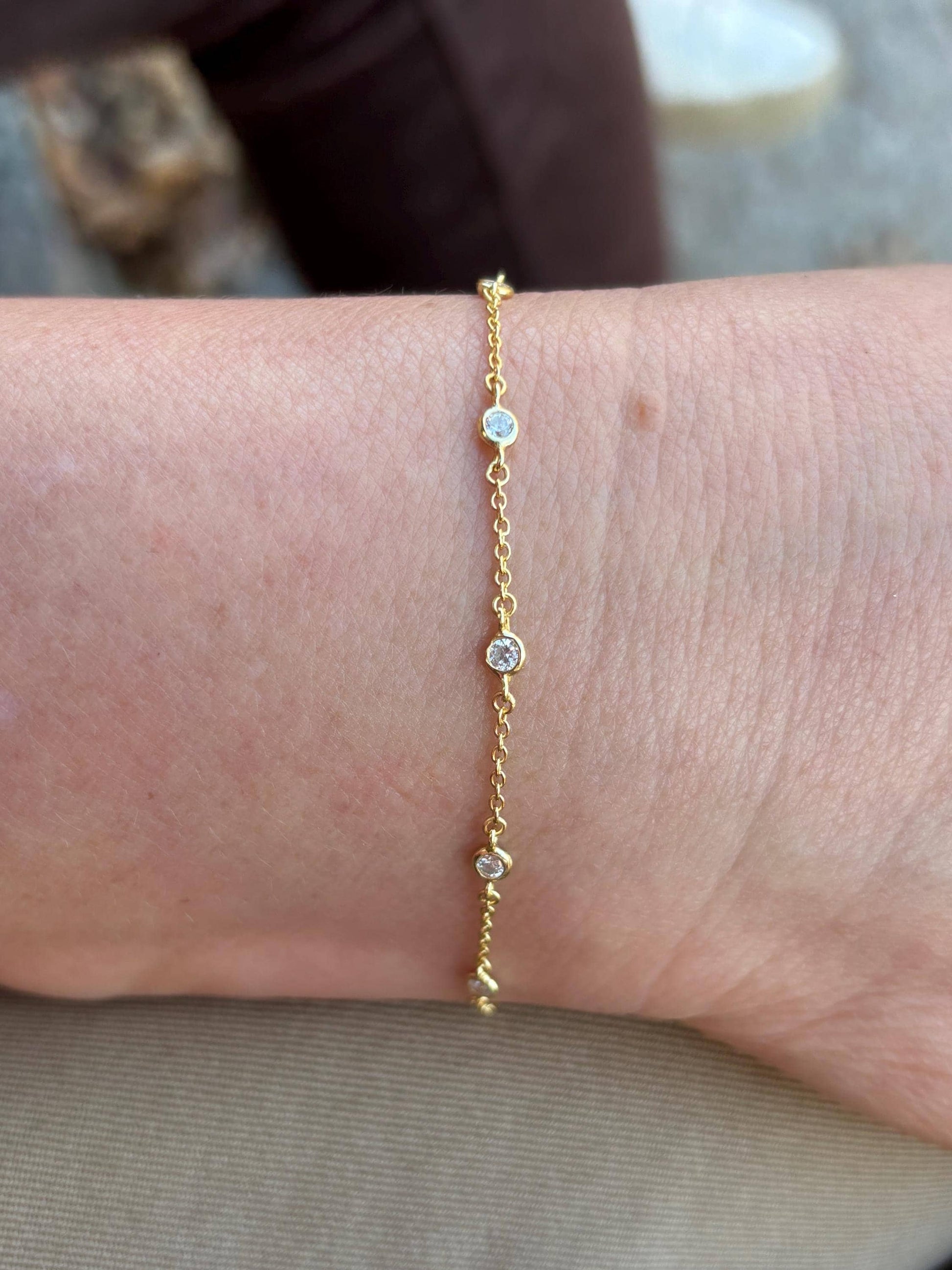 Glima Diamond Bezel Bracelet – Gold Cable Chain, Minimalist Stacking Gift