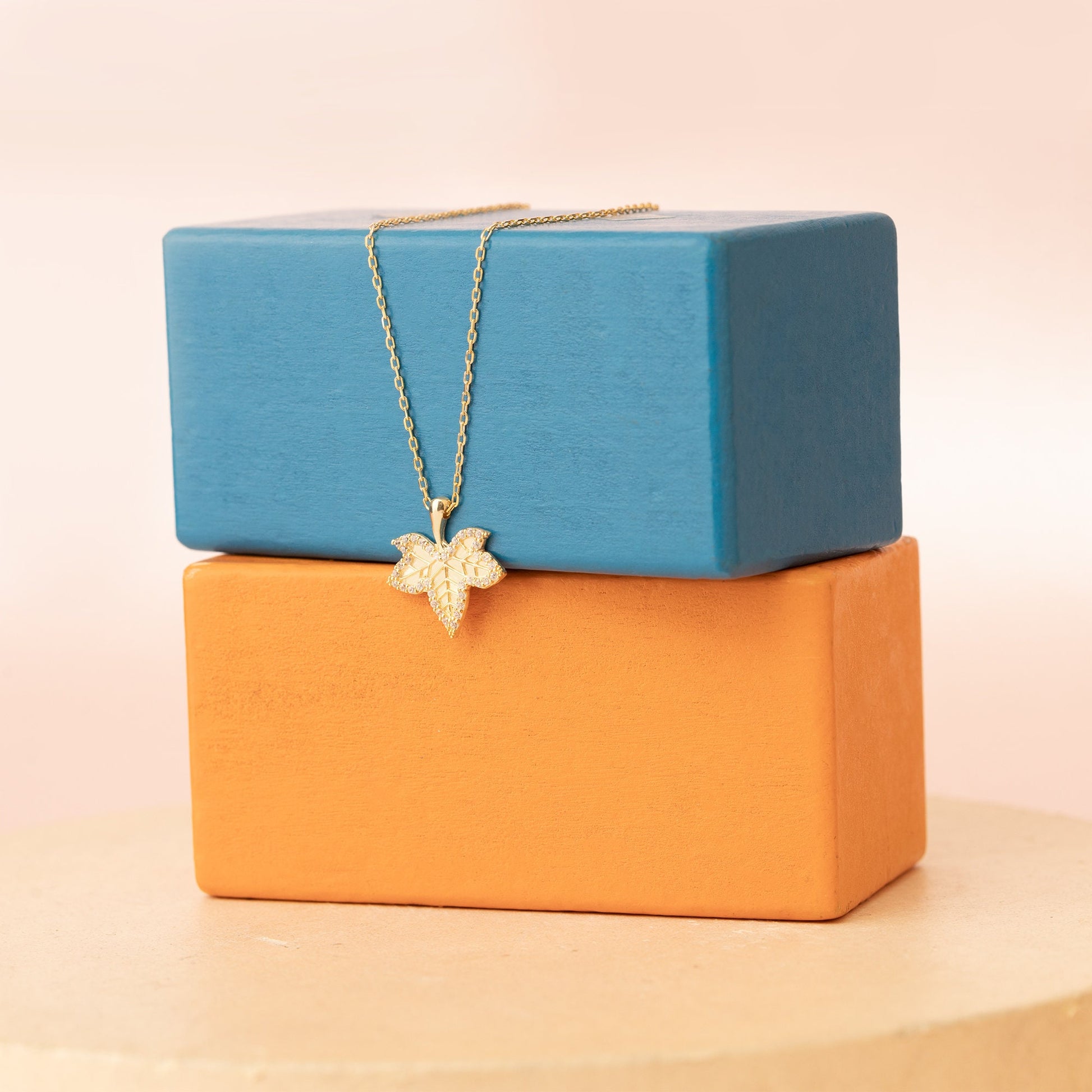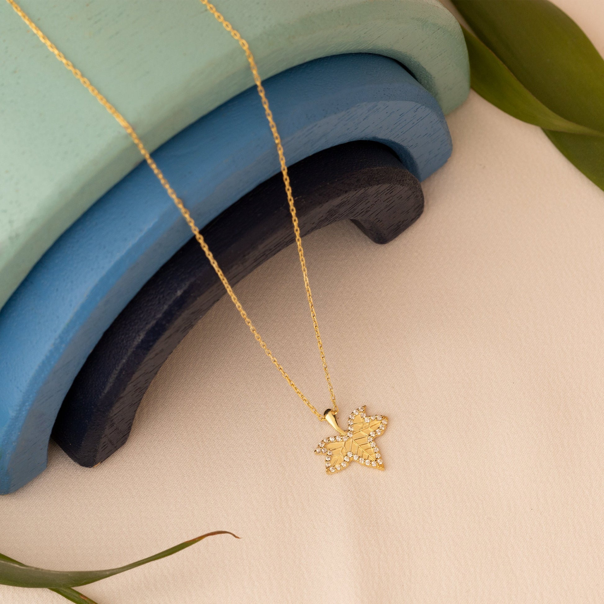 Gold Diamond Maple Leaf Necklace: Gift for Her