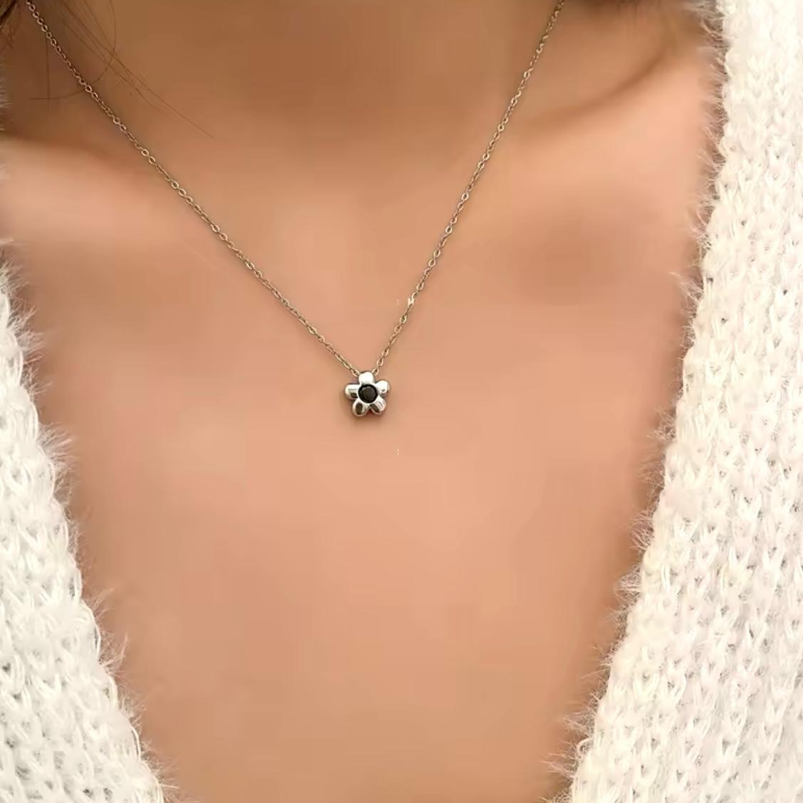 Minimalist Silver Flower Pendant Necklace