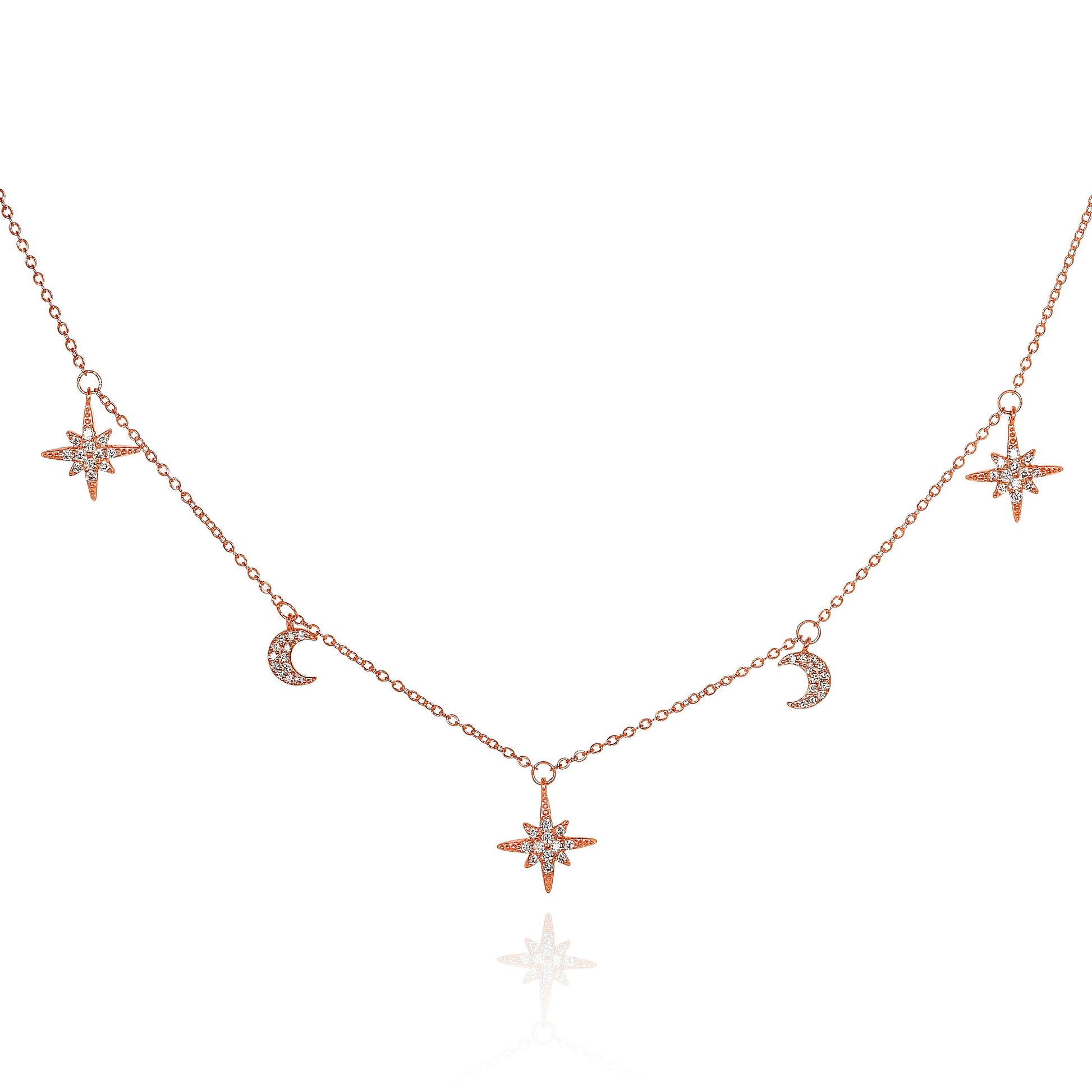 Glima Moon & Star Necklace – Dainty Rose Gold 925 Silver with CZ Shine